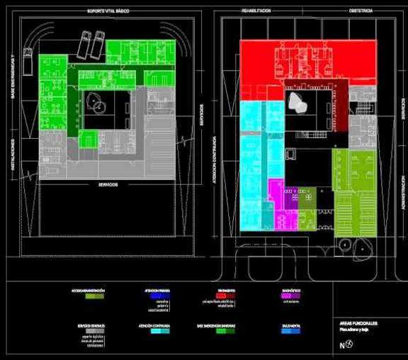 Diseño de planes funcionales y edificios para centros de salud y hospitales.